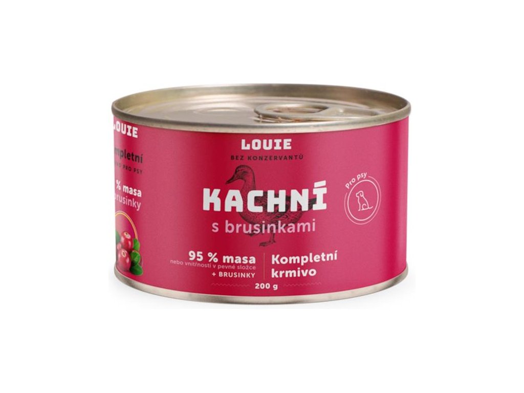 Louie konzerva pro psy kachní s brusinkami 200g – lahodná a vyvážená pochoutka pro zdraví vašeho psa! 🐶🦆🍒