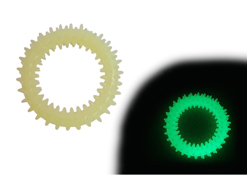 Interaktivní kroužek s jehlánky je vyroben z unikátního luminiscenčního zdravotně nezávadného materiálu. Kroužek vstřebává světlo a po té ve tmě svítí 30-50 minut. Interaktivní hračka podporuje rozvoj Vašeho pejska, je vhodná pro házení a aportování.