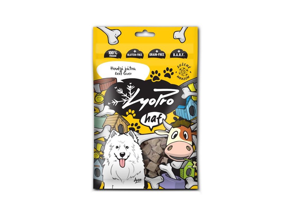 Křehká hovězí játra si díky šetrnému sušení mrazem (lyofilizaci) zachovávají své aroma, strukturu i plnou chuť, kterou psi milují. Jde o ideální volbu pro BARF (krmení syrovou stravou), psí alergiky a celiaky. Další výhodou sušení mrazem je dlouhá trvanlivost. Pamlsky se vyrábějí z čerstvých hovězích jater, která jsou jedním z nejlepších zdrojů vitamínů a minerálů. Obsahují až 100× více živin než svalovina!Při sušení mrazem navíc nedochází ke znehodnocení těchto živin. Jde tak o zdravou, lehkou a vysoce výživnou odměnu bez přidané chemie, obilnin, konzervantů a jiných balastních látek.