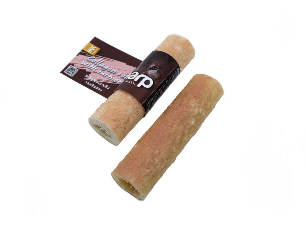 Špičkové kolagenové pamlsky, plné bílkovin podporující zdravé kosti, klouby, šlachy a kůži. Žvýkáním tohoto pamlsku psa nejen zabavíte, ale zároveň podpoříte jeho chrup a celkovou vitalitu. Pořiďte svému psovi šetrnější alternativu, u které nemusíte mít strach o jeho zdraví. Žádná buvolí nebo hovězí kůže. Kurkuma má navíc silné protizánětlivé účinky, posiluje imunitu, zlepšuje trávení a podporuje játra.