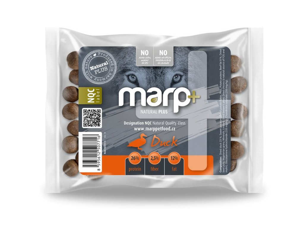 Nová receptura krmiva pro psy Marp Natural Plus s kachnou přináší několik vylepšení oproti původní řadě Marp Natural. Tou nejhlavnější změnou je přidání sladkých brambor do složení. Sladké brambory jsou výborným a lehce stravitelným zdrojem sacharidů a jsou považovány za super potravinu. Složení jsme navíc obohatili o sušenou čekanku, bohatý zdroj fruktooligosacharidů, které působí pozitivně na zažívání. A v neposlední řadě jsme krmivo obohatili o kloubní výživu. I pro novou řadu Natural Plus platí, že je postavená na kvalitních surovinách, od lokálních producentů.