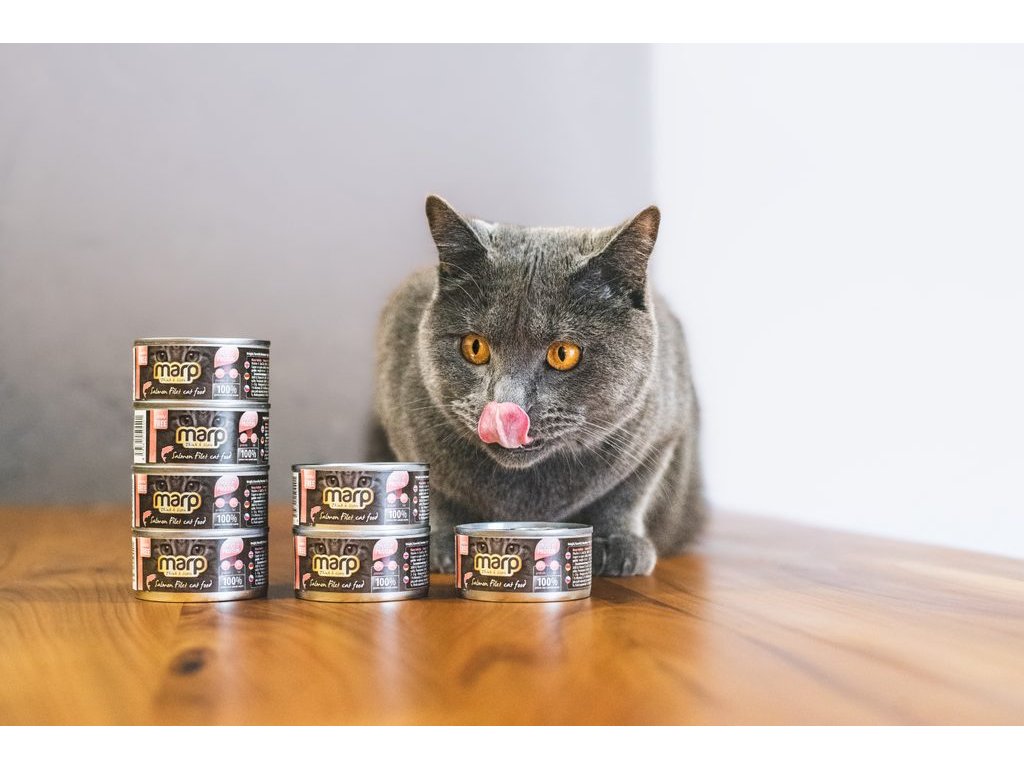 Víme, že kočka je masožravec a proto ji jako takovou ctíme. Konzervy Marp obsahují 100% bílkovin ze živočišných zdrojů. Tato nejvyšší řada konzerv Marp obsahuje pouze čistou svalovinu - kousky masa z lososa. Oproti většině podobných produktů na trhu, které pocházejí z Asie, vyrábíme tyto konzervy v Německu.