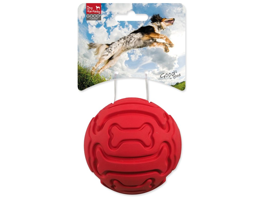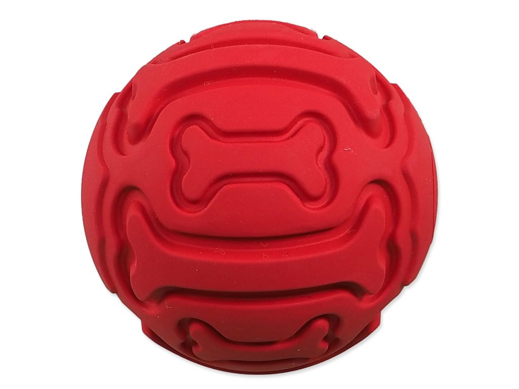 Míček Dog Fantasy gumový, vzor kost pískací červený 9 cm