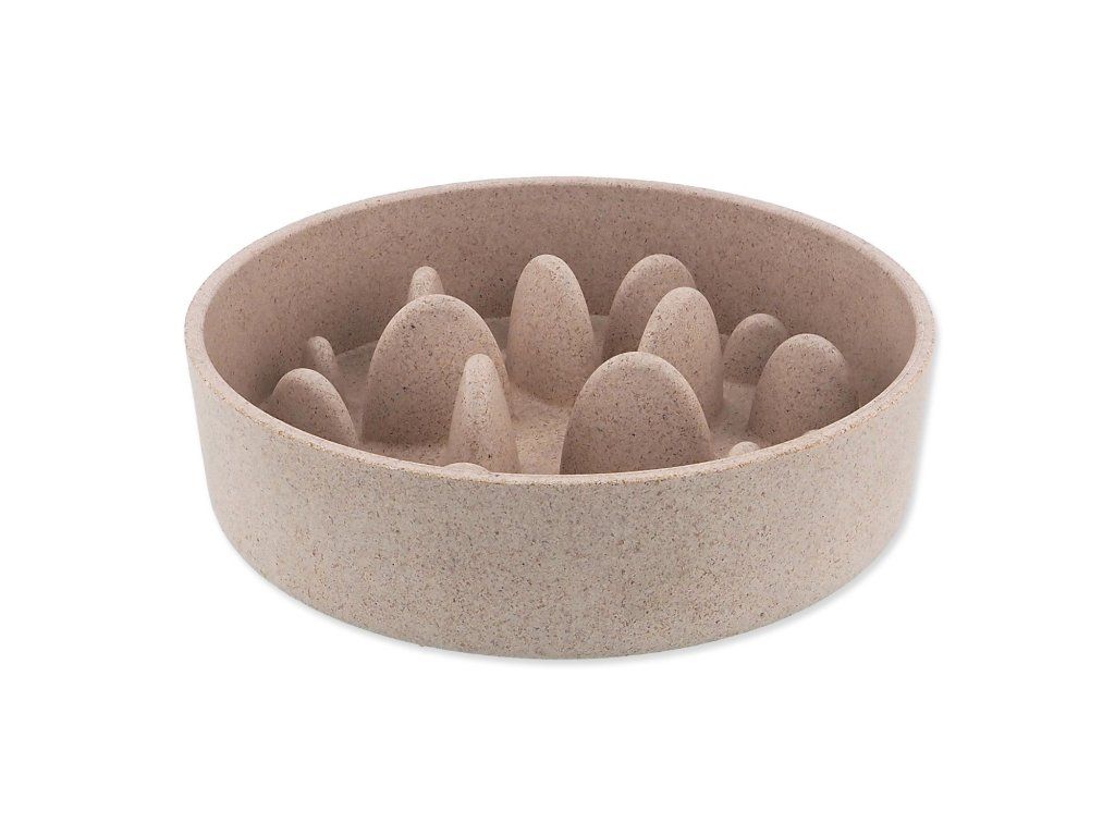 Stylová miska v béžovém provedení, která díky speciálnímu tvaru zpomaluje příjem krmiva a podporuje zdravé trávení psa. Zabraňuje hltání, předchází zažívacím potížím a dělá z krmení klidnější a zdravější rituál. Vyrobená z odolného ekologického materiálu, který je pevný a snadno se čistí.