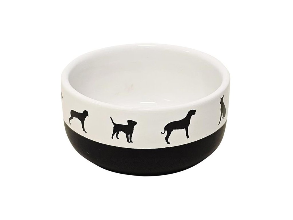 Elegantní miska Nobby Shape v bílé a černé barvě s motivem psů je vyrobena z kvalitní keramiky, která je odolná a snadno se čistí. Bez obav ji lze mýt i v myčce na nádobí.