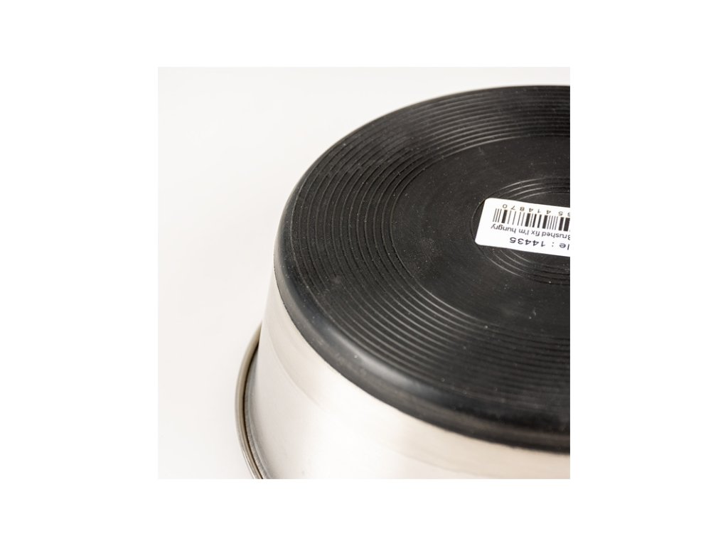 Miska Duvoplus Brushed Fix I’m Hungry na krmivo nebo vodu pro psy a kočky je vyrobena z broušené nerezové oceli. Dno má potažené gumou, aby na podlaze neklouzala a nedělala hluk. Vhodná pouze pro ruční mytí.