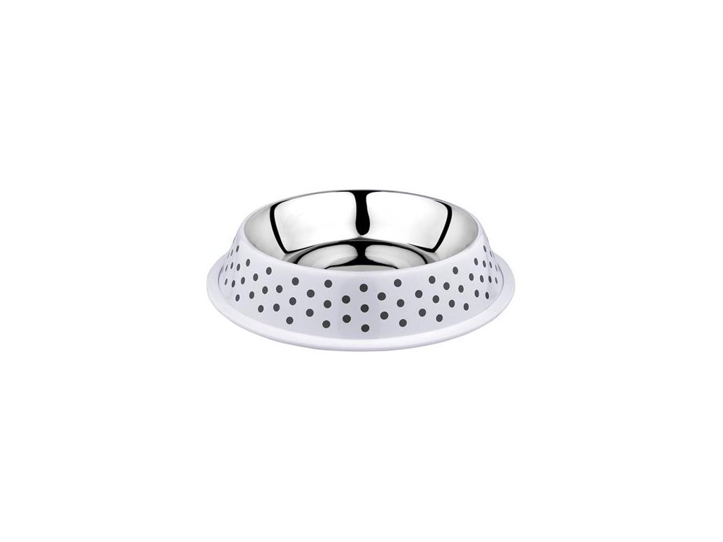 Miska Duvoplus Deco Fix na krmivo nebo vodu pro psy a kočky je vyrobena z broušené nerezové oceli. Spodní okraj má gumový lem, aby miska na podlaze neklouzala a nedělala hluk. Stylový vzhled jí dodává moderní potisk s puntíky. Vhodná pouze pro ruční mytí.