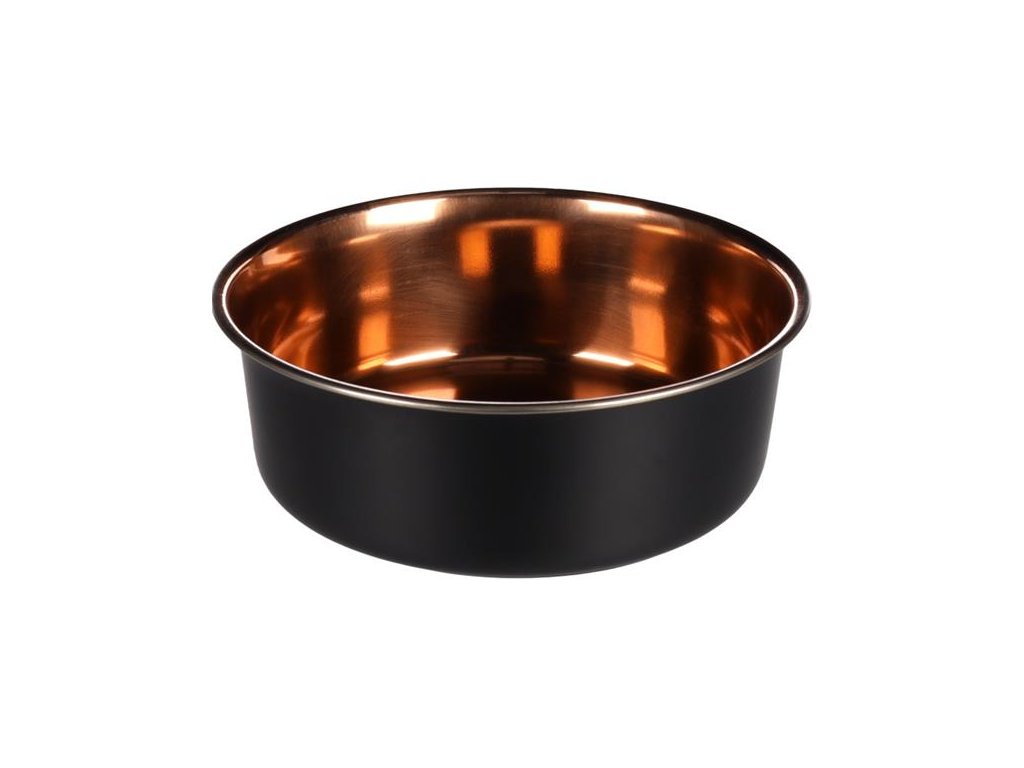 Elegantní miska Flamingo Ezra v kombinaci černé a měděné barvy je vhodná pro psy všech plemen. Je vyrobena z kvalitní nerezové oceli, která zaručuje dlouhou životnost a snadnou údržbu. Spodní strana misky je opatřena protiskluzovými prvky, které zabraňují jejímu nechtěnému posouvání během krmení. Misku můžete bez obav mýt v myčce na nádobí.