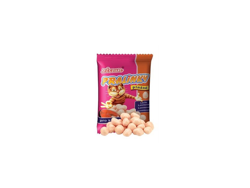 Mlsoun cat Pralinky plněné – losos 40 g jsou lahodné, měkké pamlsky s chutnou lososovou náplní, které si vaše kočka zamiluje 🐱💖. Každá pralinka má jemnou masovou strukturu s plněným středem, díky čemuž představuje voňavou a atraktivní odměnu i pro ty nejmlsnější kočičí jazýčky.