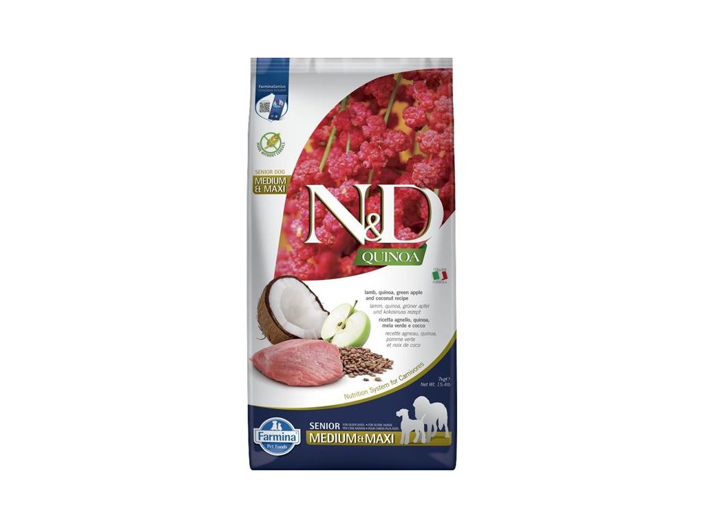 N&D QUINOA Dog GF Senior Lamb, Green Apple and Coconut Medium & Maxi 7 kg