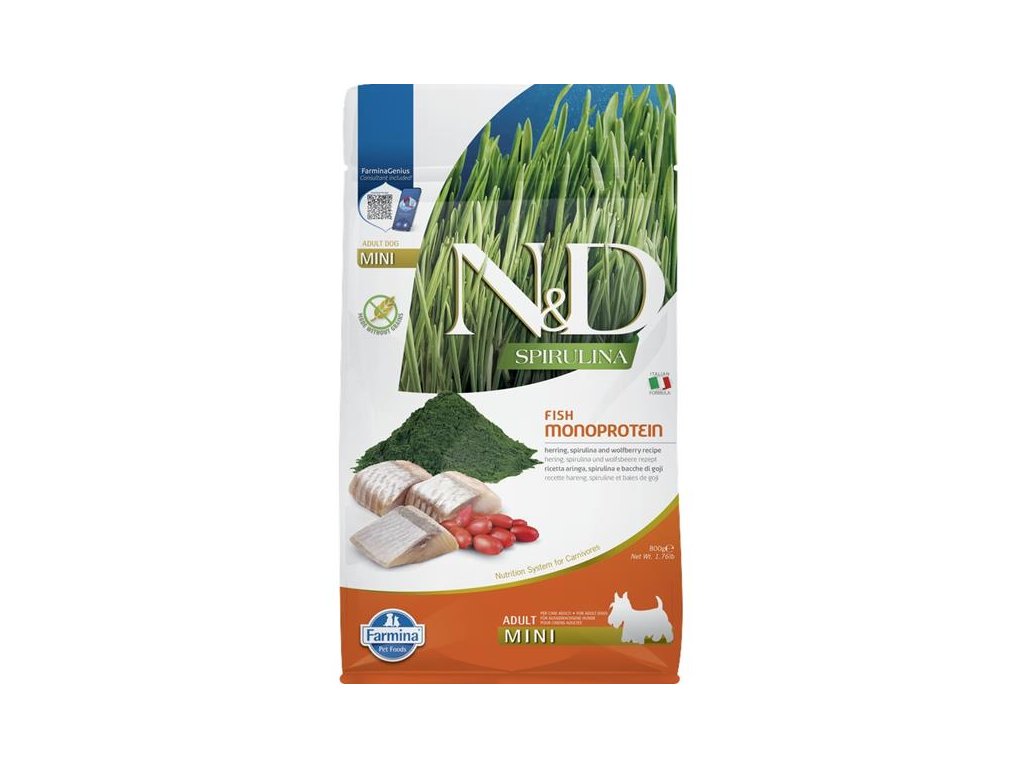 N&D SPIRULINA Dog GF Herring and Goji Adult Mini 800 g