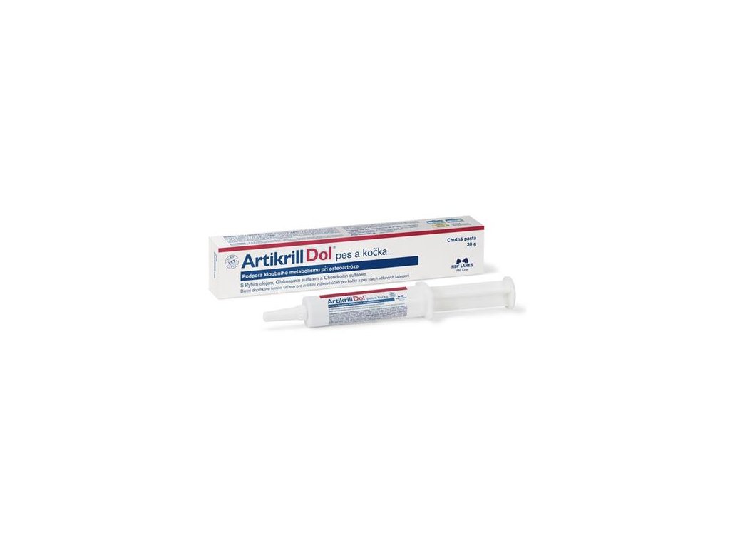 NBF Lanes Artikrill Dol je doplňkové krmivo ve formě pasty určené pro psy a kočky všech věkových kategorií s osteoartrózou. Je 100% přírodní, podporuje kloubní metabolismus, tlumí bolest a záněty a chrání kloubní chrupavku. Obsahuje rybí olej, glukosamin sulfát a chondroitin sulfát. Pasta je vhodná jako součást nutraceutické léčby zejména v počáteční fázi osteoartrózy, kdy přispívá ke zlepšení pohyblivosti a kvality života zvířete.