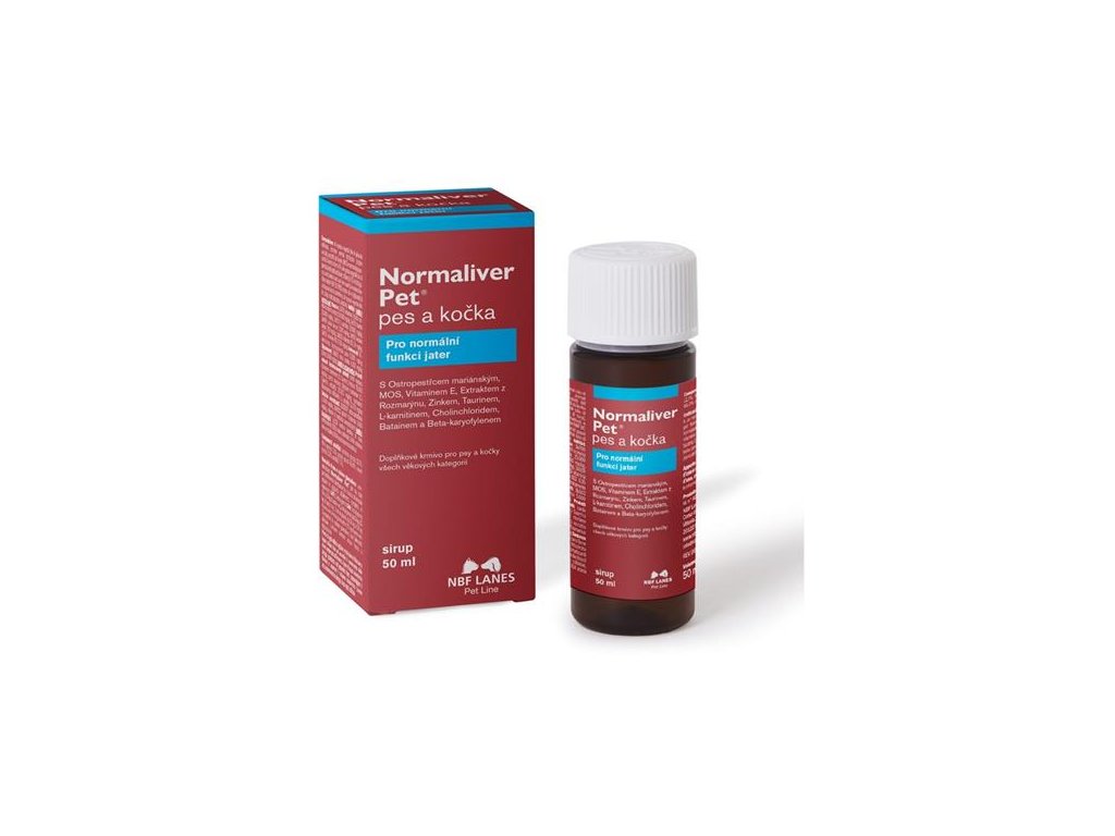 Normaliver Pet je doplňkové krmivo ve formě chutného tekutého gelu. Jeho speciální složení s ostropestřcem mariánským, MOS, vitamínem E, rozmarýnovým extraktem, zinkem, taurinem, L-karnitinem, cholinchloridem, betainem a beta-karyofylenem podporuje normální funkci jater a osy střevo-játra.