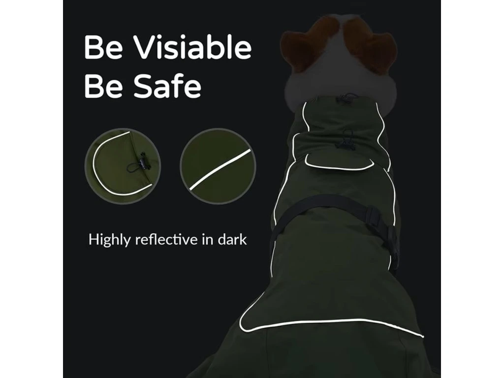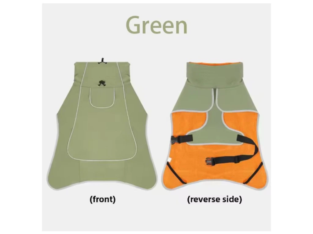 Materiál vesty je vyroben z odolného polyesteru, který je voděodolný, lehký a zároveň prodyšný. Díky tomu pomáhá chránit srst psa před vlhkostí, větrem i chladem, zatímco prodyšná struktura materiálu zajišťuje pohodlí i při aktivním pohybu 🐾.
