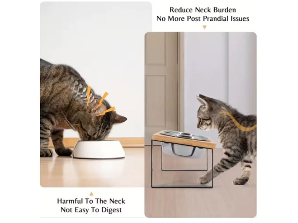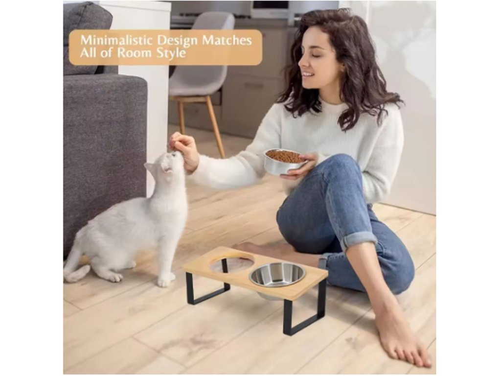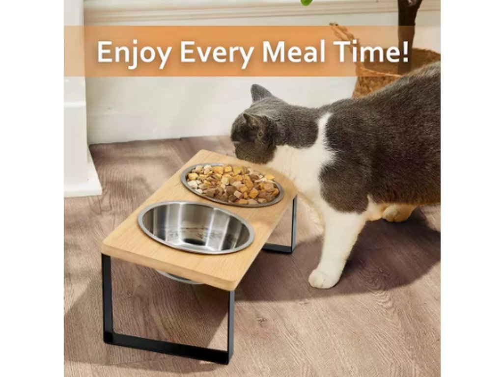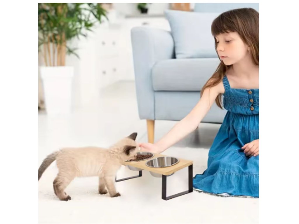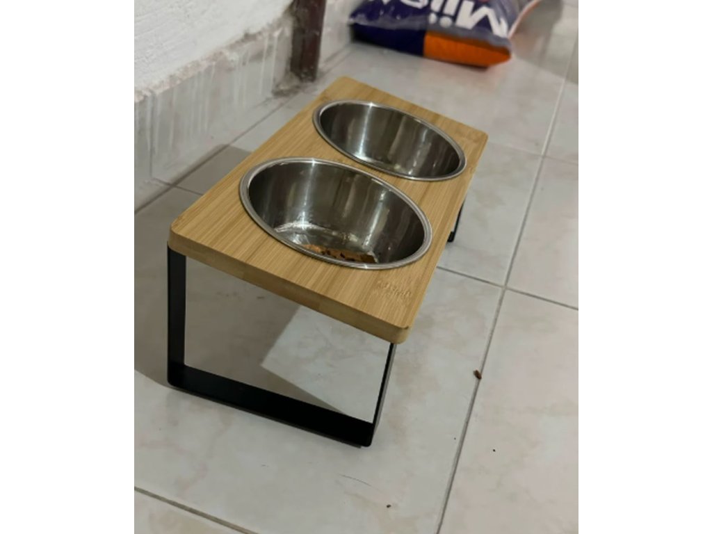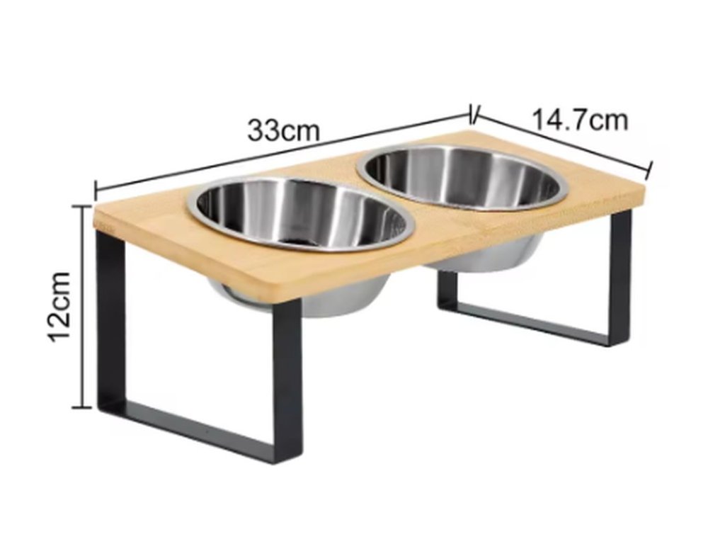 Velice kvalitní misky na granule a vodu pro kočky i psy. Díky podstavci drží misky na svém místě a nehrozí tak vylití vody nebo vysypání granulí. Misky jsou vyrobeny z nerezového materiálu, který je odolný a snadno se čistí. Misky jsou uloženy v podstavci ve sklonu 15°, což napomáhá pohodlnějšímu krmení a snižuje zátěž na krční páteř vašeho mazlíčka. Rozměry podstavce jsou 12x33x14,7 cm.