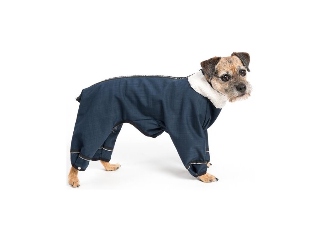 Zimní kombinéza LUNA pro psa je navržena tak, aby chránila všechny důležité partie psího těla (včetně končetin) před chladem, větrem, sněhem i deštěm. Funkční materiál – membránový softshell – splňuje hned několik funkcí najednou: je hřejivý, nepromokavý (s omezením), větruodolný a zároveň prodyšný. Svrchní vrstvu tvoří měkká tkanina s hladkým povrchem, který je vodoodpudivý a neulpívá na něm sníh. Pod ní je větru- a voděodolná membrána podšitá příjemným beránkem. Okraje kombinézy jsou obšité elastickým lemem a nohavice lze sepnout praktickými patentkami, aby obleček nikde neodstával a neprofukoval. Pro snadné oblékání a svlékání má kombinéza zip přes celá záda. Za krkem je otvor pro připnutí vodítka k obojku. Samozřejmostí jsou reflexní prvky.