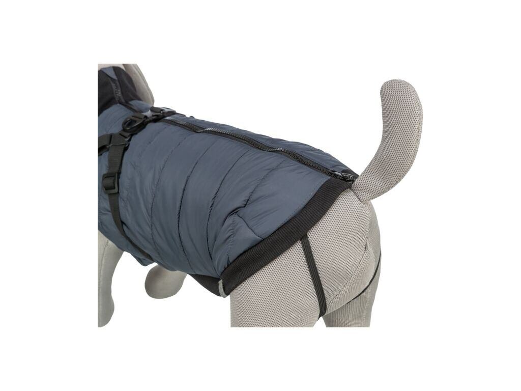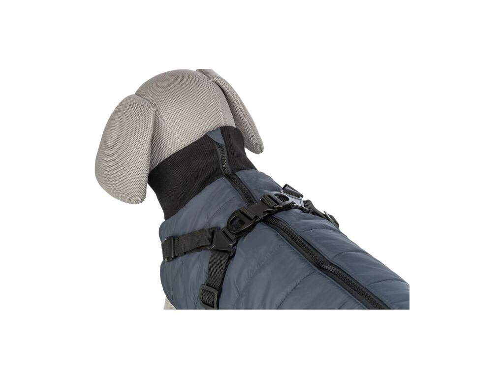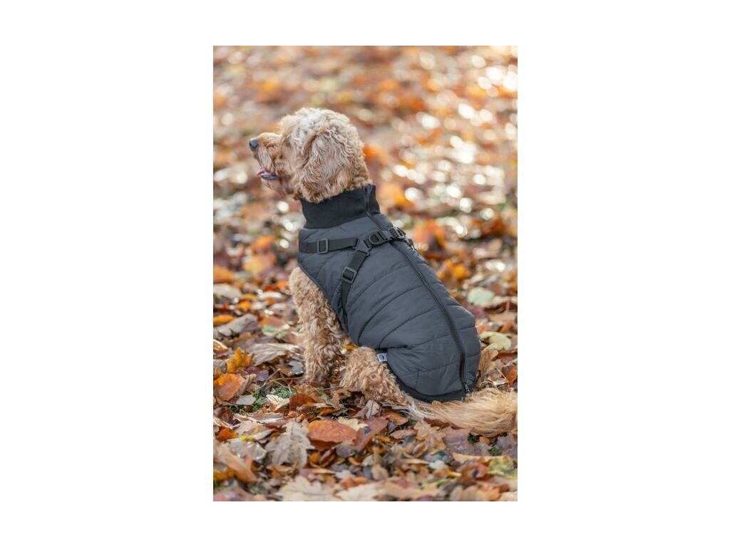 Velkou výhodou je integrovaný postroj, díky kterému odpadá nutnost oblékat vestu a postroj zvlášť – stačí připnout vodítko a můžete vyrazit 🐶. Zip po celé délce zad usnadňuje oblékání, zatímco elastická vložka v oblasti břicha se dokonale přizpůsobí postavě psa.