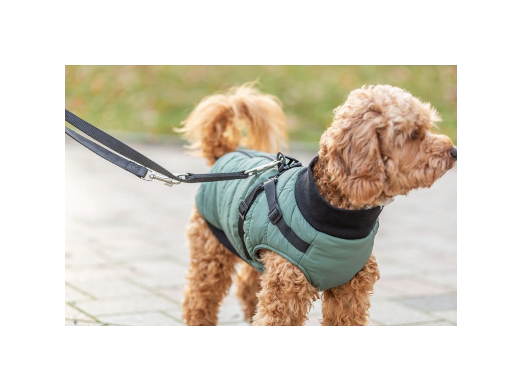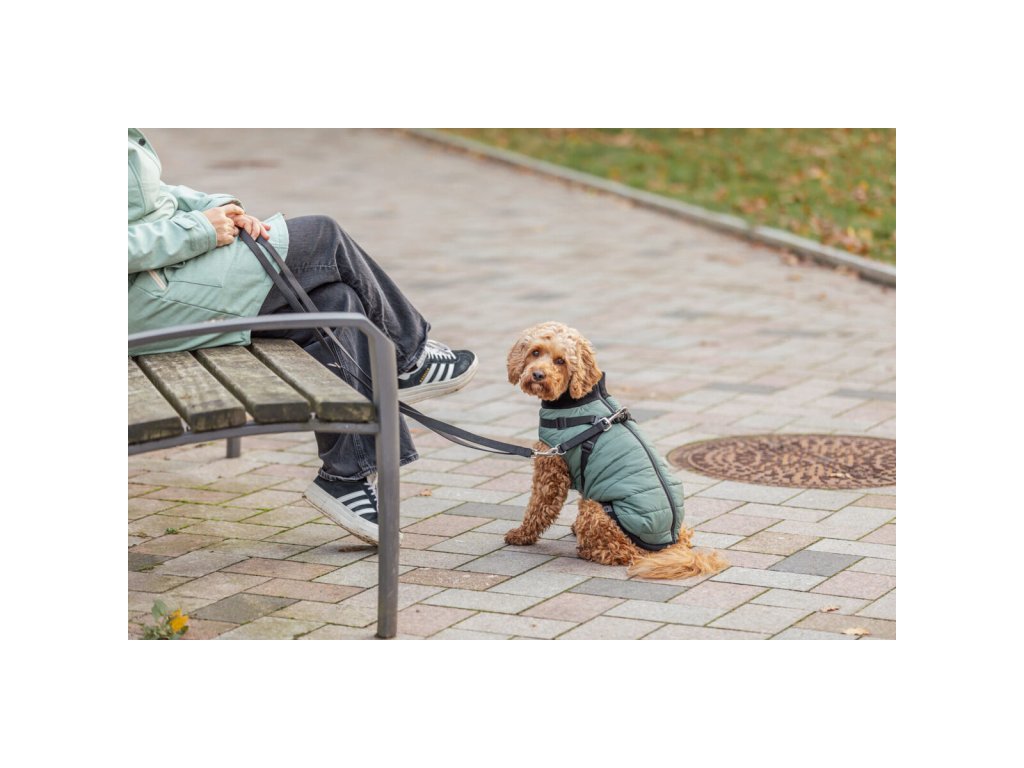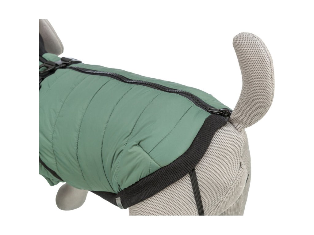 Velkým plusem je integrovaný postroj, takže není potřeba kombinovat více vrstev – stačí připnout vodítko a můžete vyrazit na procházku 🐕. Zip po celé délce zad umožňuje snadné oblékání i svlékání, zatímco elastická vložka v oblasti břicha zajistí pohodlné přizpůsobení tělu psa.