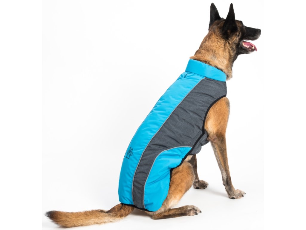 Zimní vesta ESMÉ LUX ochrání vašeho psa před chladem, větrem, deštěm i sněhem. Svrchní vrstva z bundové tkaniny s voděodolným zátěrem je zateplená vafixem a podšitá měkkým flanel fleecem, který nezacuchává srst. Obleček je tvarovaný tak, aby psa neomezoval v pohybu, a přitom chránil všechny důležité partie jeho těla. Gumičky na stehna a na ocásek zajišťují, aby vesta neodstávala v zadní části, a elastický lem brání úniku tepla po celém obvodu oblečku. Za krkem je otvor pro připnutí vodítka k obojku a poutko pro zavěšení (při sušení atd.). Oblékání je snadné a rychlé: vesta se zapíná na suché zipy – 1 pod krkem a 1 pod hrudníkem. Samozřejmostí jsou reflexní prvky.