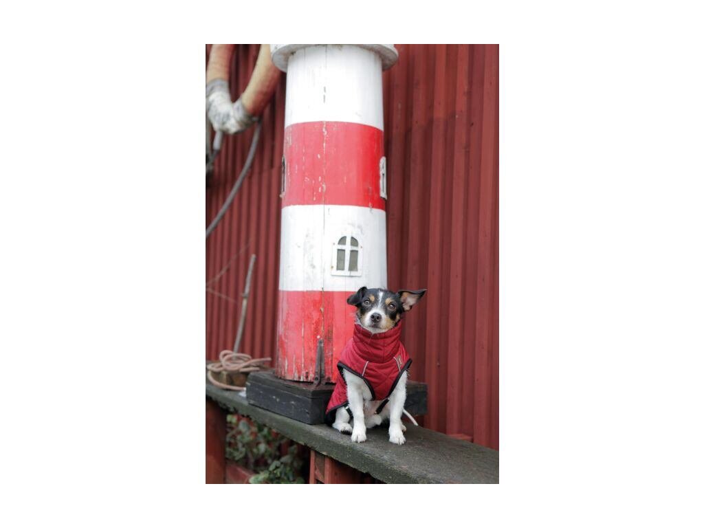 - se 2 voděodolnými zipy (na krku pro připevnění vodítka a v zádové oblasti pro kombinaci s postrojem)