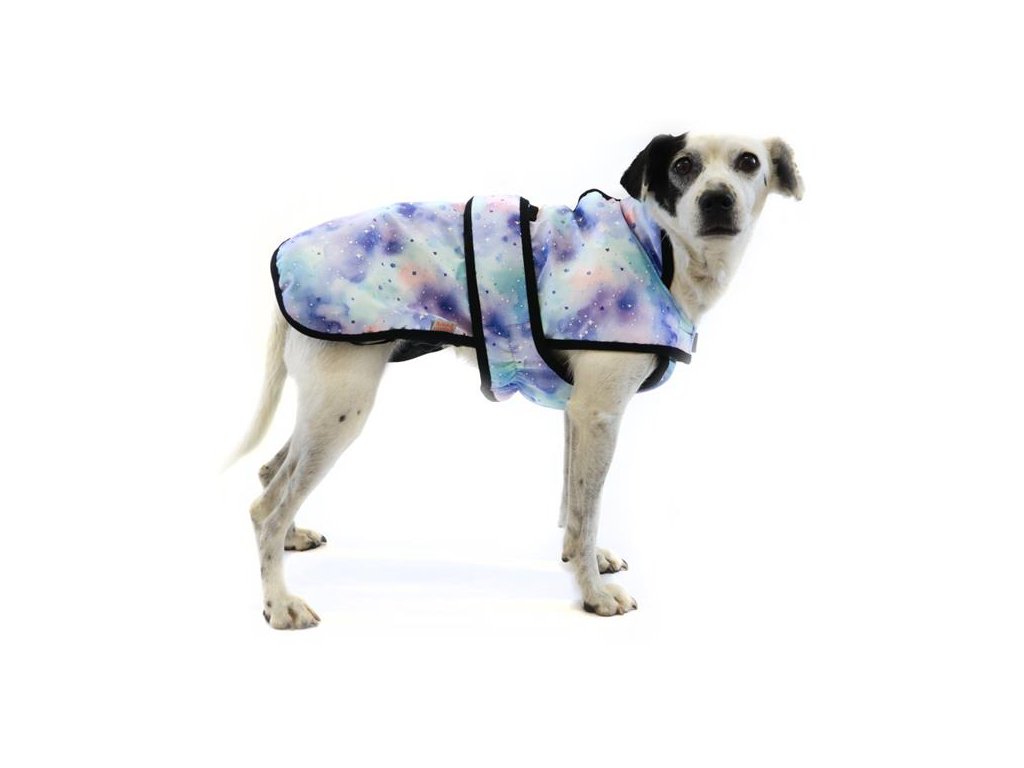 Zimní vesta Nebula XL LUX je určena psům s větším obvodem hrudníku. Svrchní vrstva z nepromokavého materiálu je zateplená vafixem a flanel fleecem (tzv. minky). Obleček je tvarovaný tak, aby psa neomezoval v pohybu, a přitom chránil všechny důležité partie jeho těla před chladem, větrem, deštěm i sněhem. Zateplený stojáček kryje šíji, gumičky na stehna zajišťují, aby obleček neodstával v zadní části, a elastický lem brání úniku tepla po celém obvodu. Za krkem je otvor pro připnutí vodítka k obojku a poutko pro zavěšení (při sušení atd.). Oblékání je snadné a rychlé: vesta se zapíná na suché zipy – 2 pod krkem a 1 na zádech (na hrudním pásu). Samozřejmostí jsou reflexní prvky.