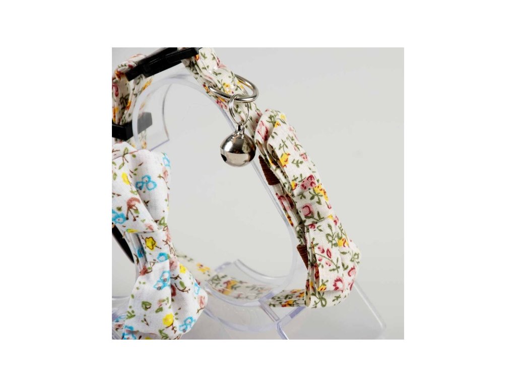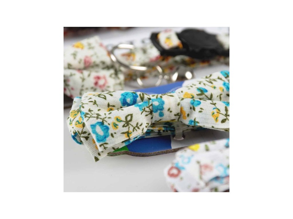 Nylonový obojek Flower Meadow je vhodný pro kočky všech plemen. Má nastavitelnou délku a zapíná se na bezpečnostní sponu, která je konstruována tak, aby se rozpojila při síle tahu 2 kg v případě, že se kočka zachytí obojkem o větev, plot apod. Obojek je opatřený ozdobným motýlkem a rolničkou, která upozorní ptáky na přítomnost kočičího predátora.