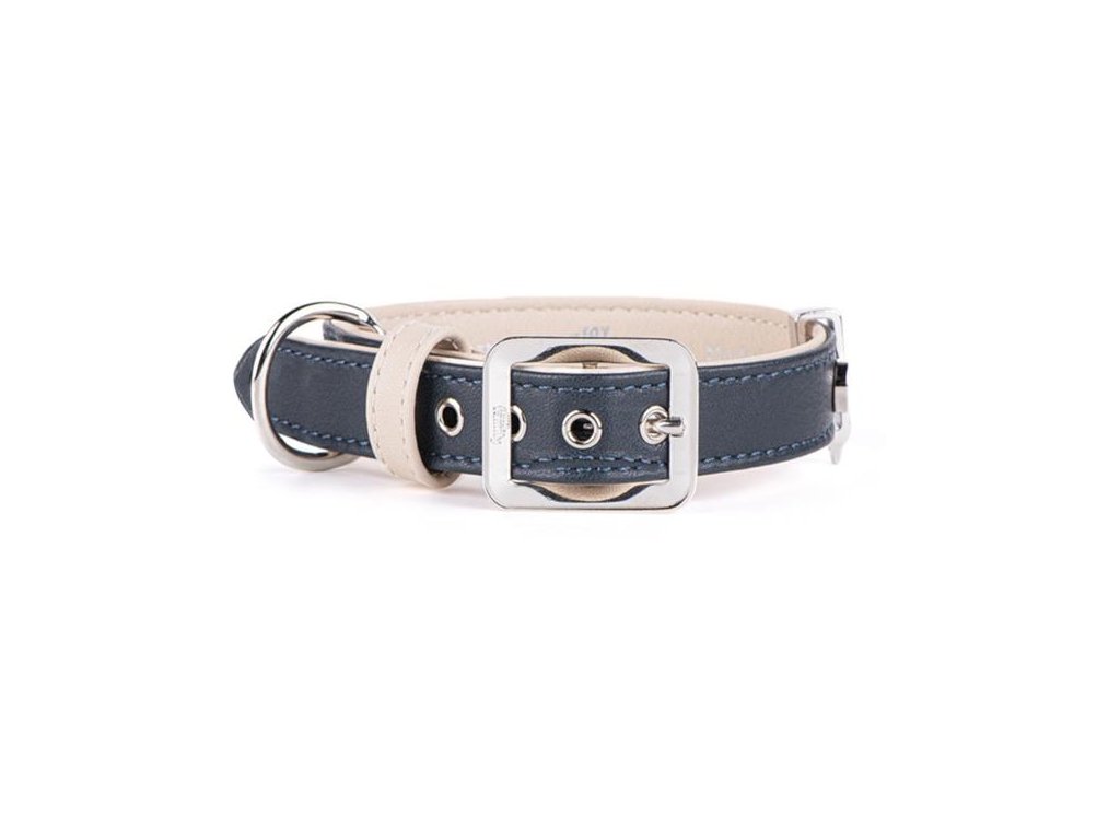 Obojek kůže Hermitage (vel. XL) 49–59 cm / 33 mm modré/krémové MF 🐾 je exkluzivní doplněk pro střední a velké psy, kteří si zaslouží prvotřídní styl i pohodlí 💎. Tento luxusní obojek z kolekce Hermitage je vyroben z pravé italské kůže v elegantní modro-krémové kombinaci s unikátní bílou bronzovou povrchovou úpravou, která zaručí, že váš pes bude vždy vynikat ✨.