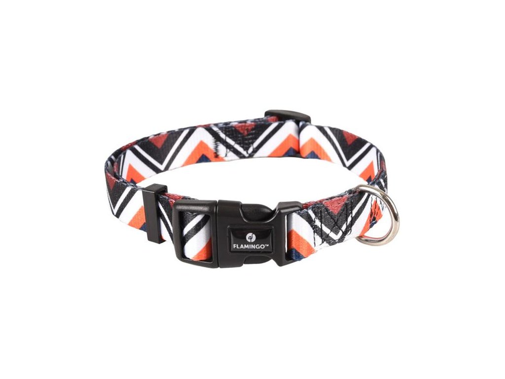 Obojek Flamingo Stian je vhodný pro štěňata i dospělé psy. Je vyroben z pevného a voděodolného nylonu. Má pohodlné zapínání na plastovou přezku a je opatřen chromovaným D-kroužkem na připnutí vodítka. Délku lze nastavit v rozmezí 20–35 cm.