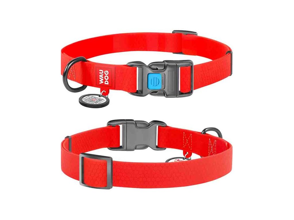 Obojek WAUDOG Waterproof je vyrobený z collartexu, inovativního materiálu, k jehož hlavním přednostem patří voděodolnost, vysoká životnost, tvarovatelnost, nízká hmotnost a snadná údržba. Pásek má na dotek příjemný, jemně texturovaný povrch a je měkčí než běžné plastové výrobky – budete-li jej tedy potřebovat časem povolit, nezůstane pokřivený v původním místě ohybu. Ve spojení s dalšími odolnými plastovými součástmi (včetně trojzubcové spony s pojistkou) tak tvoří odlehčený obojek, který pořídíte za příznivou cenu.