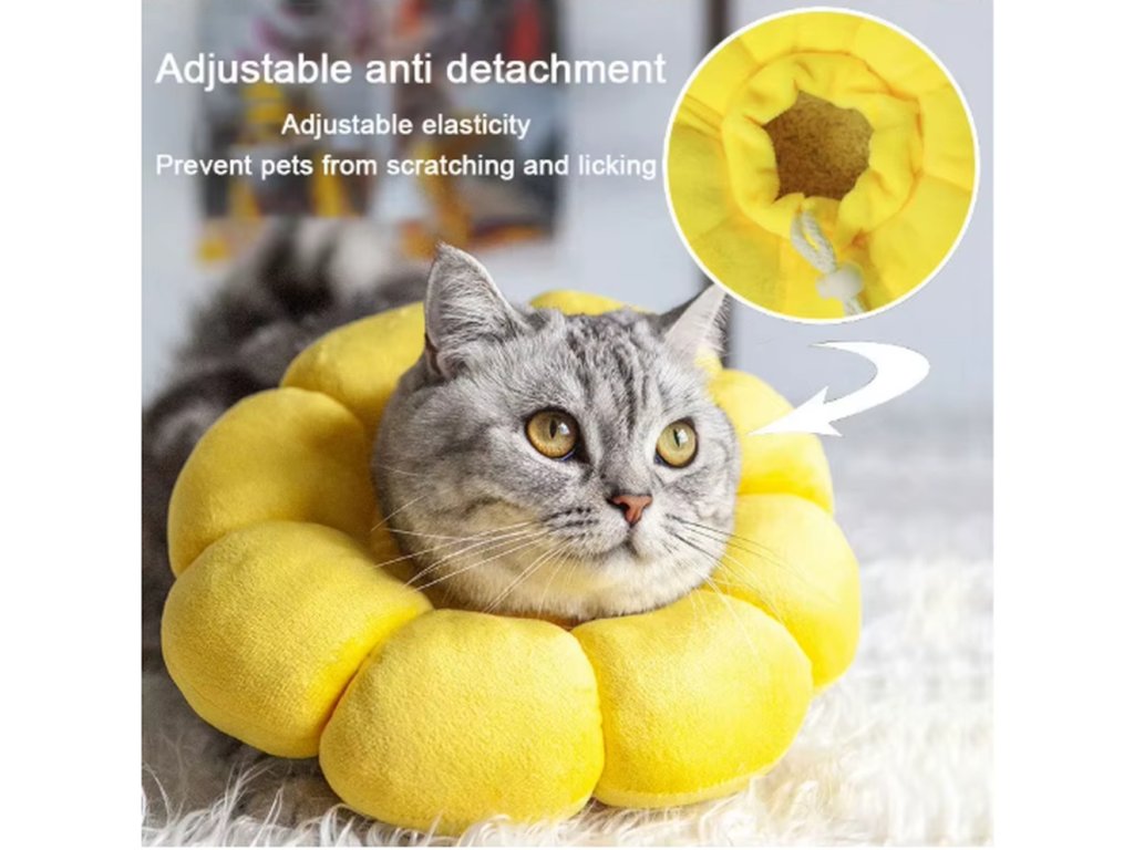 Tento ochranný límec pro kočky ve tvaru slunečnice pomůže vašemu mazlíčkovi bezpečně se zotavit po zákroku nebo při kožních potížích, a to pohodlně a bez stresu 🐾🌻.