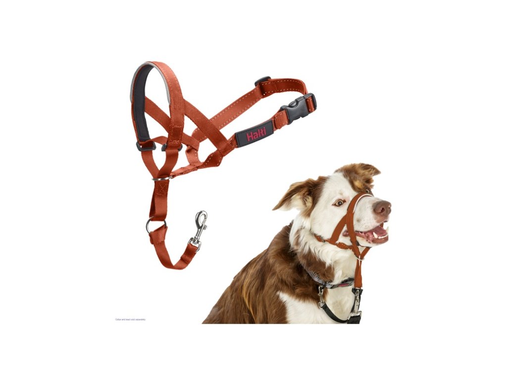 Ohlávka Halti fungující na principu koňské ohlávky šetrným způsobem znemožňuje psovi tahání na vodítku. Hlava je vedena tahem, tělo následuje automaticky. Ohlávka je v oblasti čumáku vypolstrovaná.