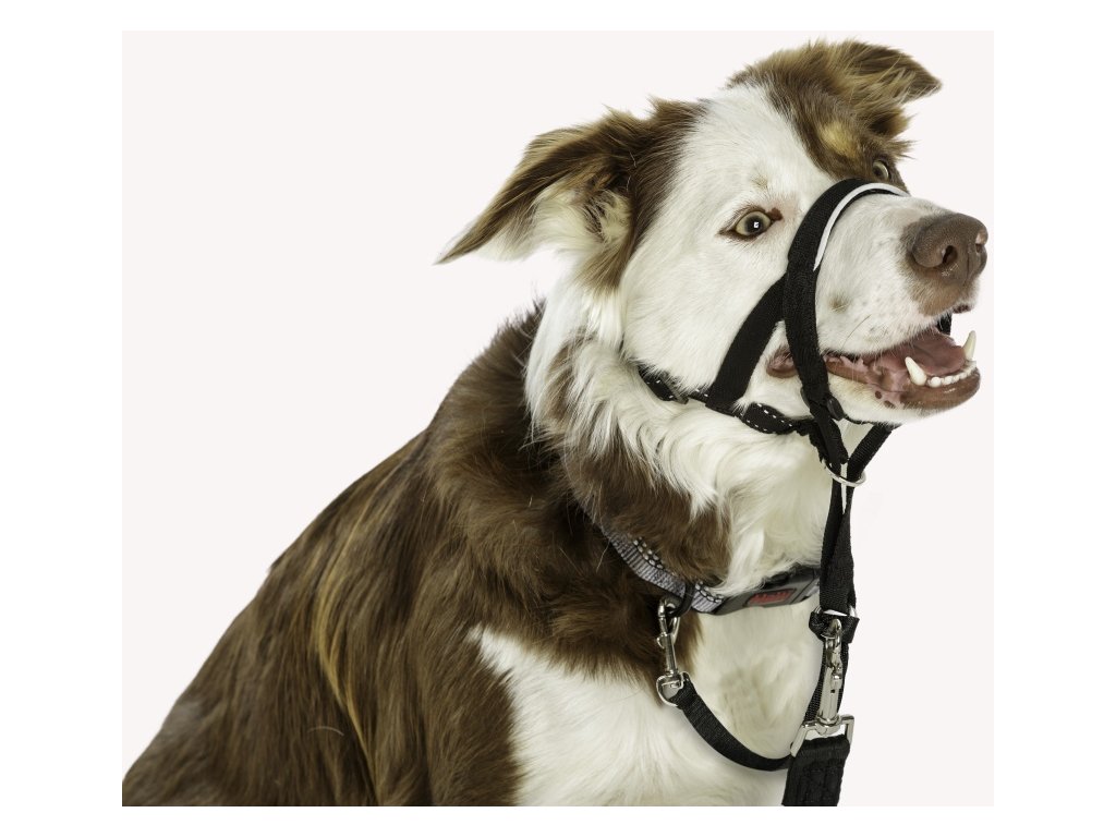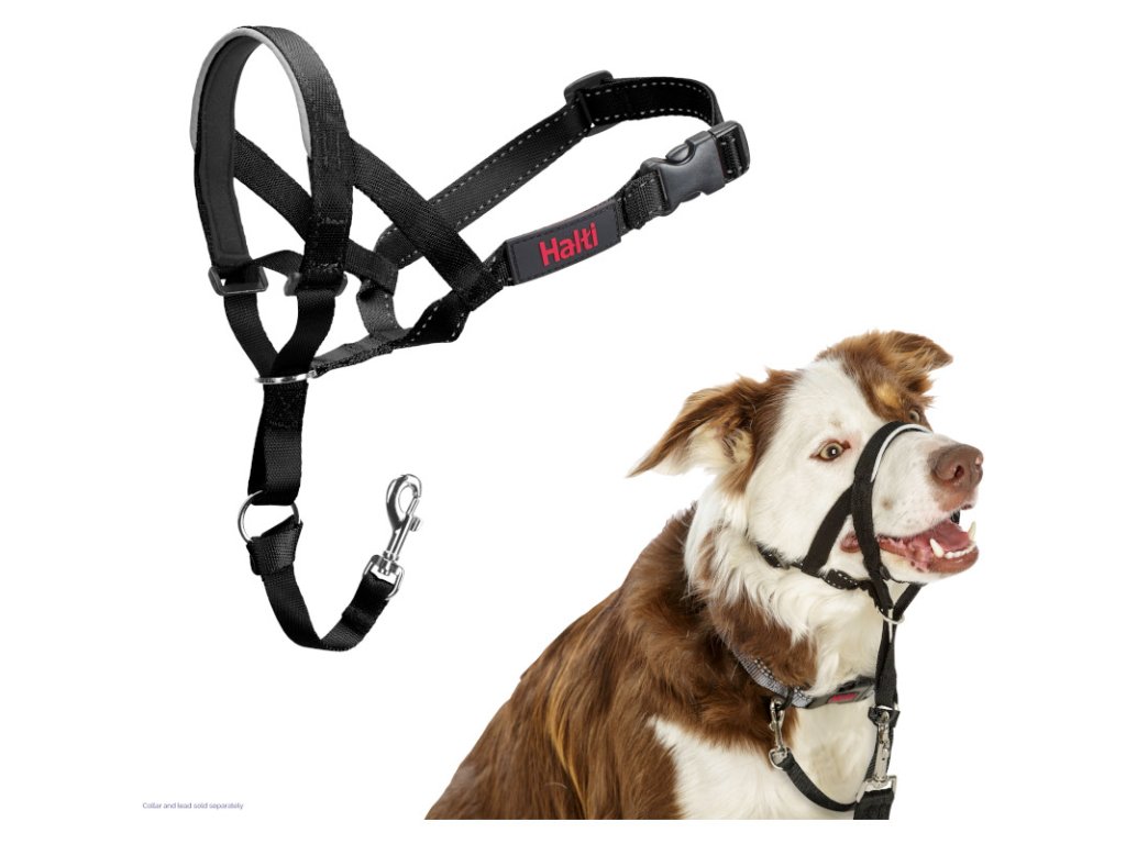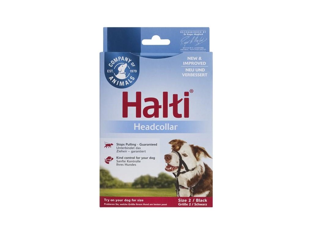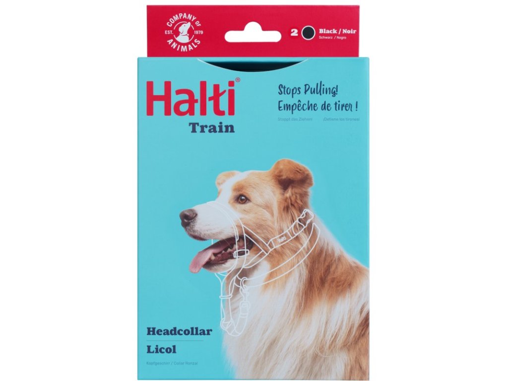 Ohlávka Halti znemožňuje psovi tahání na vodítku, šetrná metoda na principu koňské ohlávky. Hlava je vedena tahem, tělo následuje automaticky. Ohlávka je v oblasti čumáku vypolstrovaná.