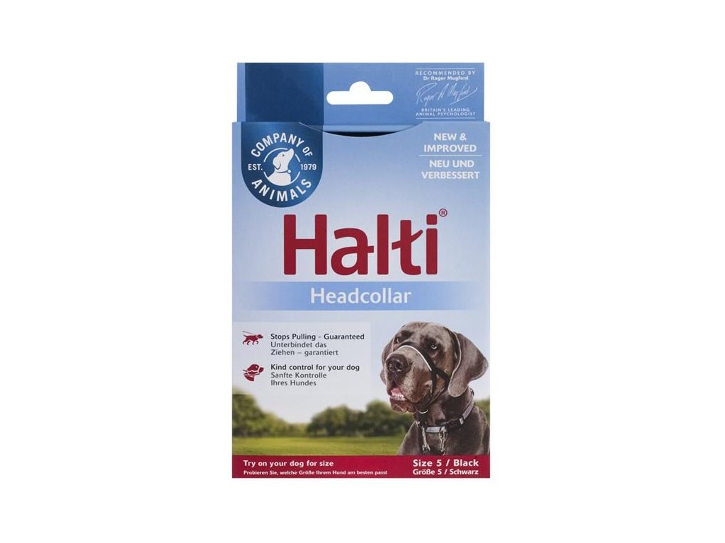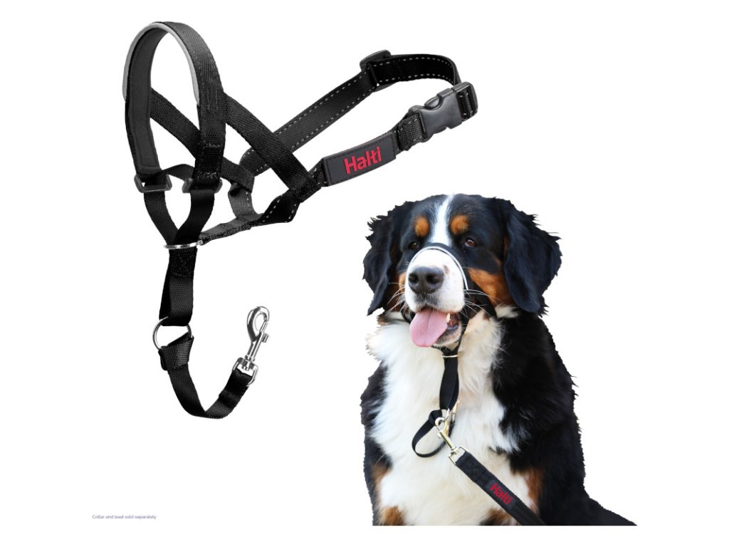 Ohlávka Halti znemožňuje psovi tahání na vodítku, šetrná metoda na principu koňské ohlávky. Hlava je vedena tahem, tělo následuje automaticky. Ohlávka je v oblasti čumáku vypolstrovaná.