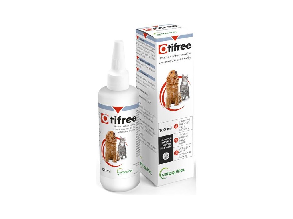 Roztok k čistění zevního zvukovodu u psů a koček. Otifree® roztok má schopnost intenzivně rozpouštět ušní maz a nečistoty, významně se tak rovněž snižuje počet bakterií a kvasinek přítomných v zevním zvukovodu.