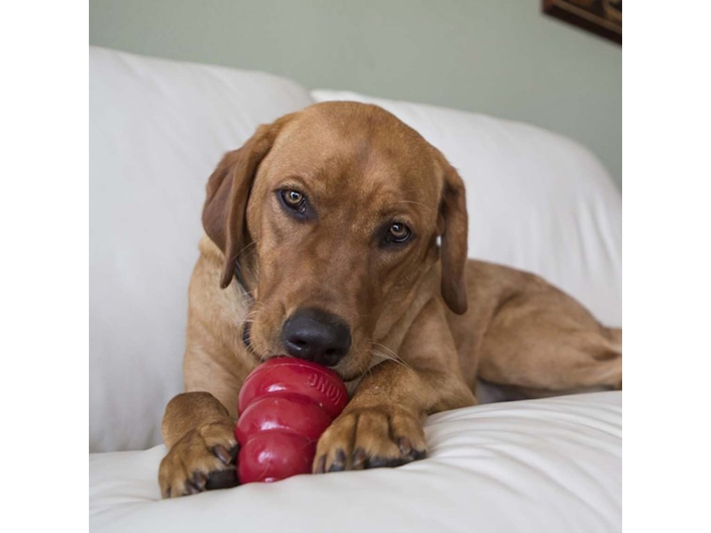 Lahodné, křupavé pamlsky KONG Snacks™ Bacon & Cheese se slaninou a sýrem jsou díky svým rozměrům vhodné jako náplň do větších hraček KONG.