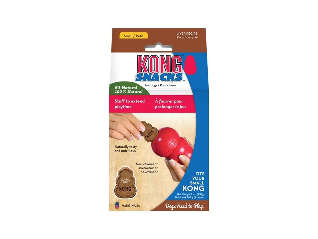 Lahodné, křupavé pamlsky KONG Snacks™ Liver z kuřecích jsou díky svým rozměrům vhodné jako náplň do menších hraček KONG.