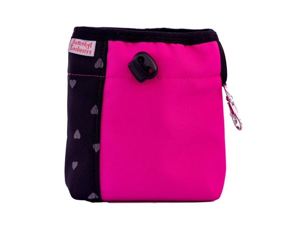 Pamlskovník Samohýl Exclusive Splendor je praktická a trvanlivá kapsička na psí dobroty nebo i menší hračku. Sáček je uzavíratelný pomocí stahovací šňůrky a můžete ho nosit buď navléknutý (na opasku) za textilní poutko nebo připnutý (např. k poutku kalhot) kovovou karabinkou. Materiál: vně – softshell uvnitř – nepromokavá bundová tkanina