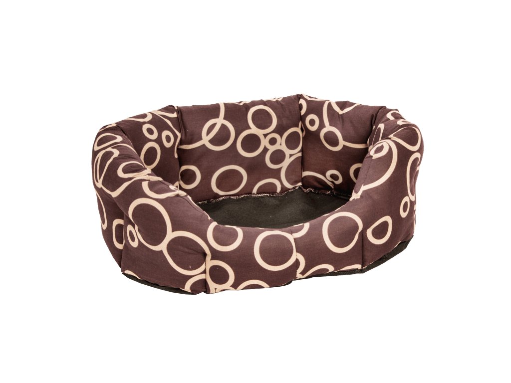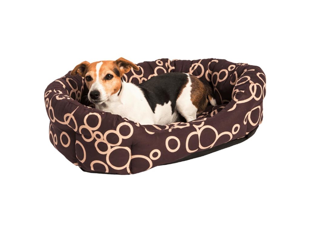 Bohatě vyplněné boky pelíšku a speciální prošití v několika bodech zabraňují nerovnoměrnému rozmístění výplně a zajišťují stálost tvaru.