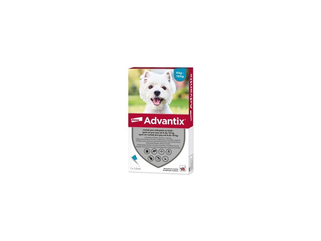 Advantix 100 mg + 500 mg roztok pro nakapání na kůži – spot-on pro psy (> 4 kg < 10 kg) je veterinární léčivý přípravek. Před použitím si pečlivě přečtěte příbalovou informaci