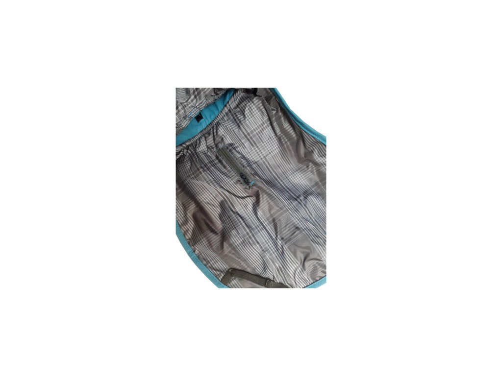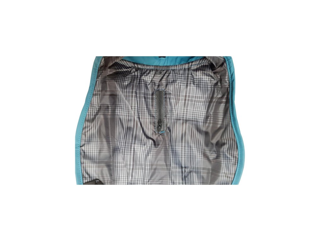 Obleček má 2 voděodolné zipy, které umožňují snadné použití s obojkem i postrojem – žádné složité vrstvení. Je vyroben z kombinace polyuretanu a polyesteru, takže je nejen větruodolný, ale také snadno čistitelný.