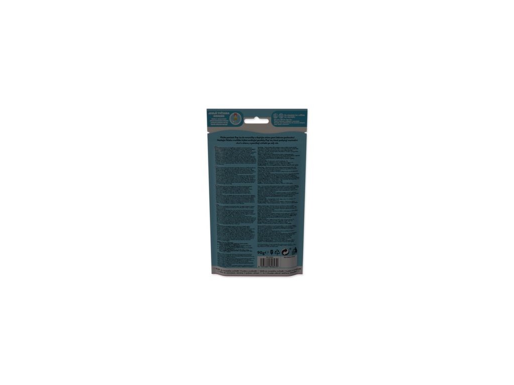 | Složení | Hrachový škrob, batátový škrob, kuřecí, rostlinný glycerin, celulózová vláknina, jogurt (4?%), banán (4?%), jahoda (4?%), uhličitan vápenatý, rostlinný olej, fruktooligosacharidy (prebiotikum FOS) (0,1?%), mananoligosacharidy (prebiotikum MOS) (0,1?%), výtažek z?vojtěšky, výtažek z?mrkve. |