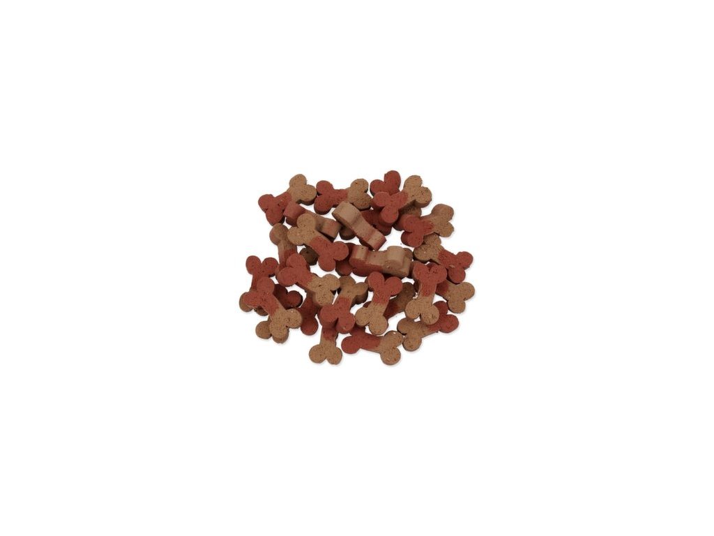 Obiloviny, maso a vedlejší produkty živočišného původu (min. 4 % vepřové), cukry, tuky a oleje, sušená syrovátka, vedlejší produkty rostlinného původu, Aditiva: barvivo, aroma, kalcium 5000 mg/kg (ES přísady). S konzervanty a antioxidanty (ES přísady). Návod ke krmení: slouží jako pochoutka za odměnu k běžné denní krmné dávce. Podávejte 1-2 kusy denně. Vždy zajistěte zvířeti přístup k čerstvé pitné vodě. Skladujte na suchém a chladném místě!