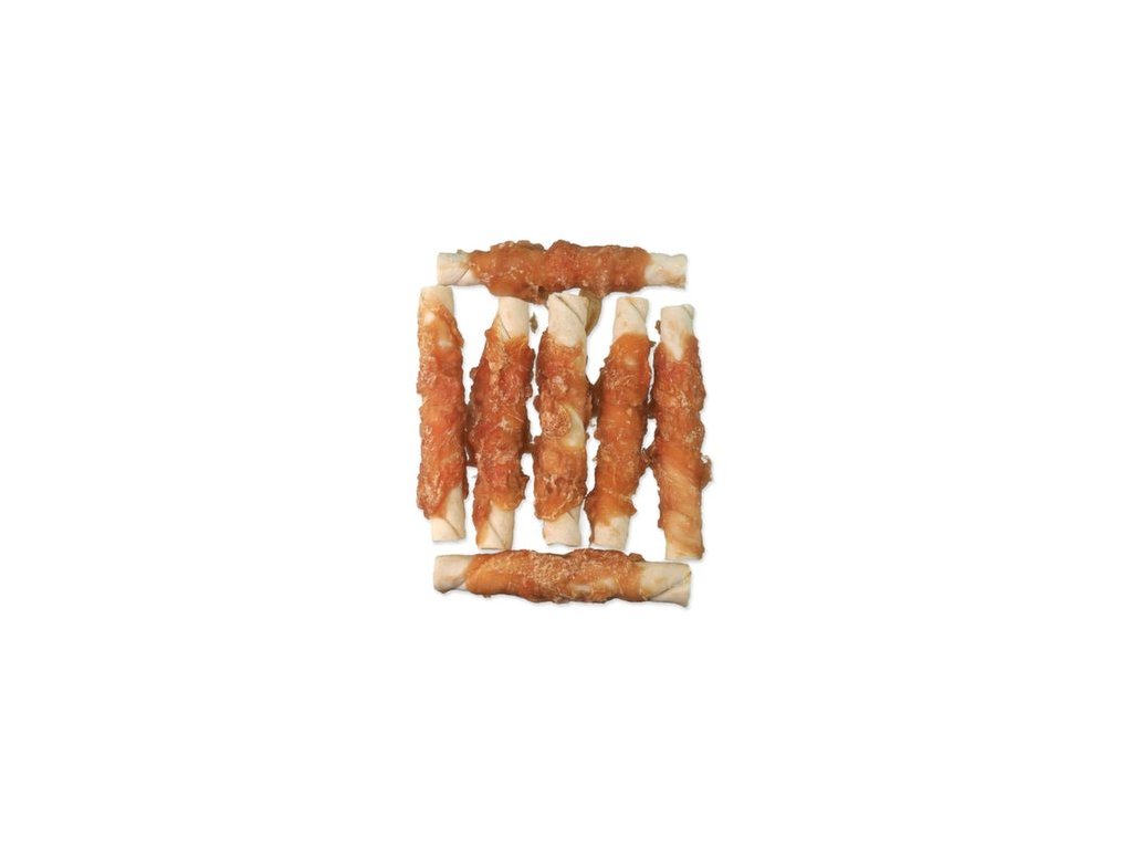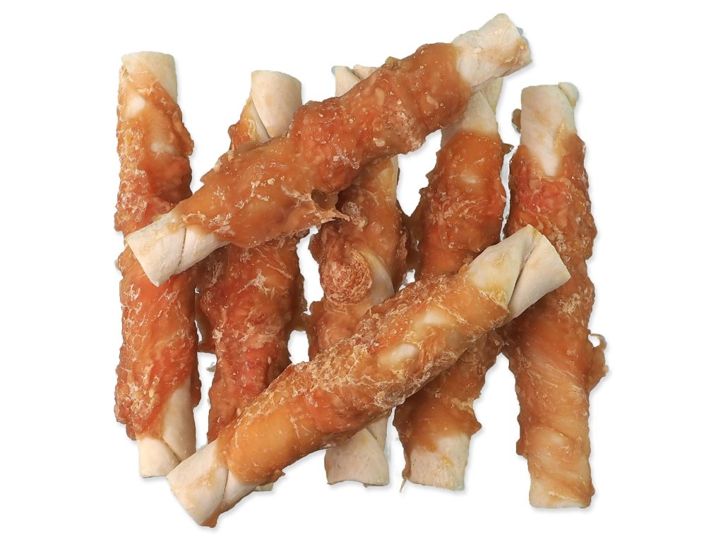 Tyčinky z buvolí kůže obalené kuřecím masem pro střední a velké psy. Doplňkové krmivo, podávejte jako pochoutku.