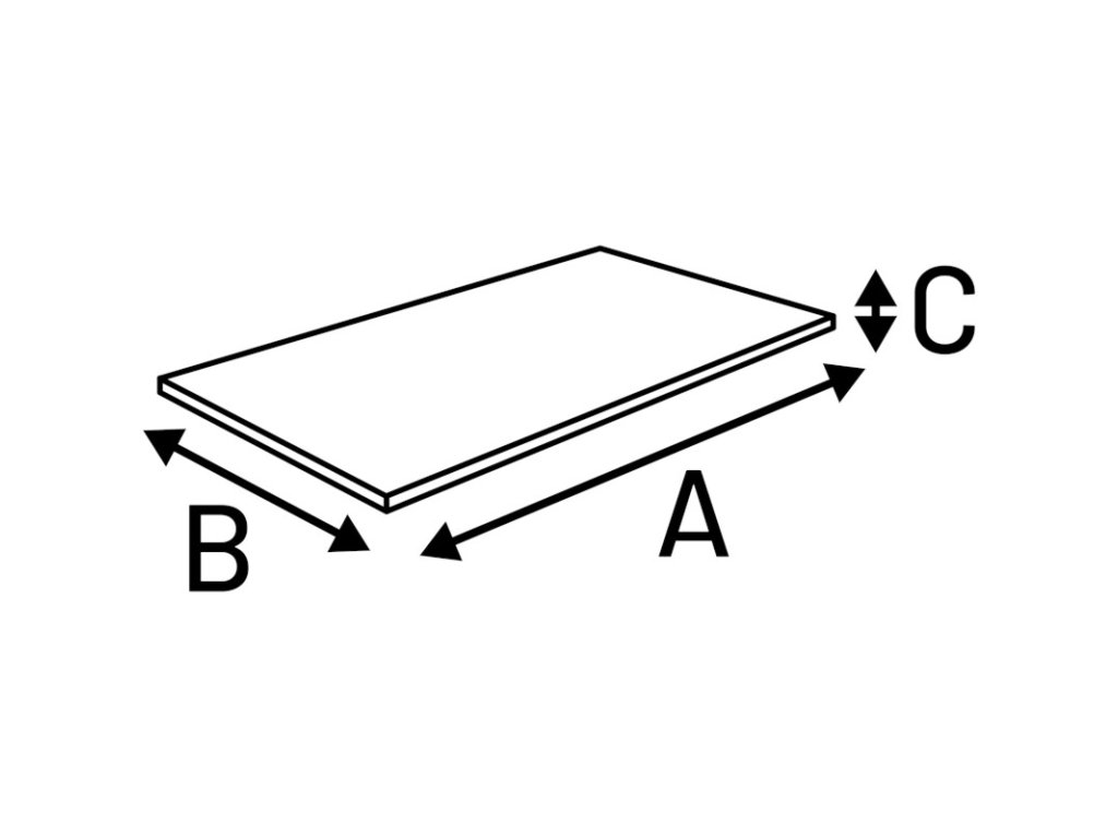 A = 40,5 cm, B = 25,5 cm, C = 2 cm (viz obrázek)