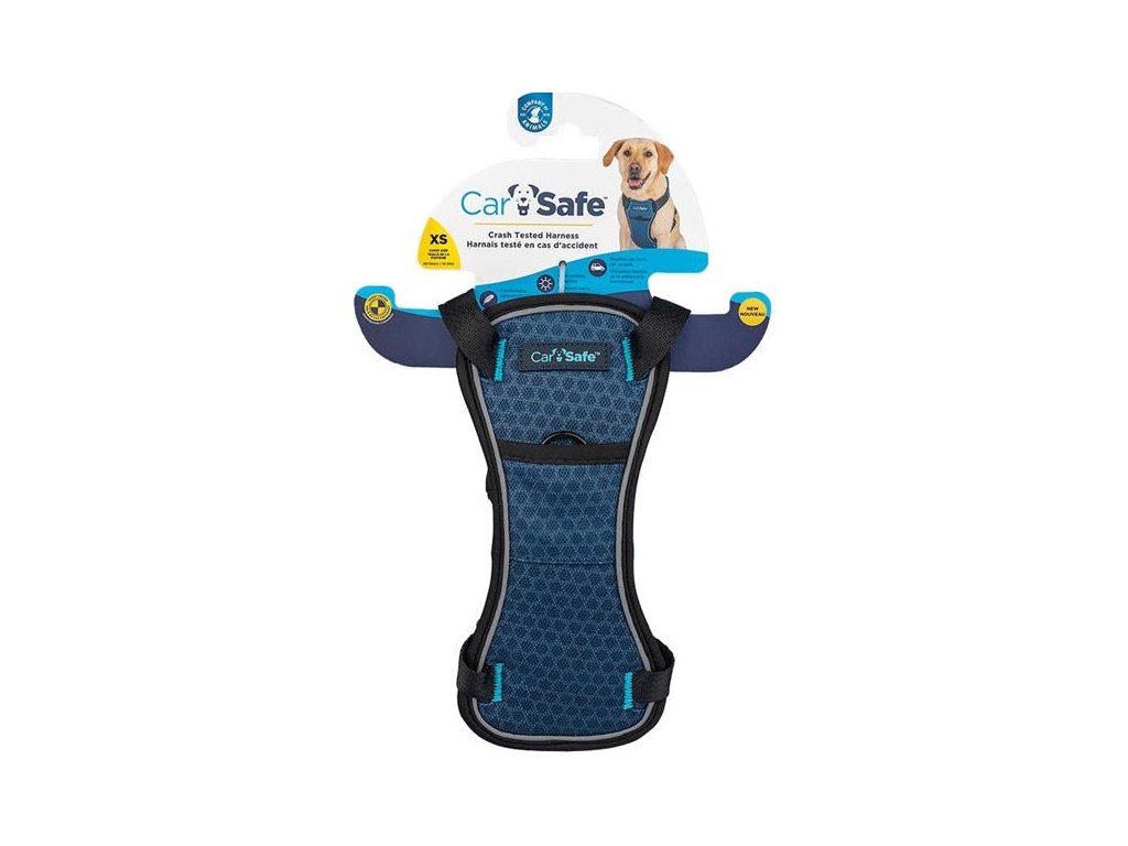 CarSafe Crash Tested Harness od společnosti Company of Animals je ultrapevný a lehký postroj pro psy prověřený při nárazových testech bezpečnosti motorových vozidel a certifikovaný do hmotnosti psa 32 kg. Má dvojí funkci – lze jej použít spolu s bezpečnostním pásem jako přepravní zádržný systém v autě i jako postroj k venčení psa. Je nejen bezpečný, ale také velmi pohodlný. Je vyrobený z kvalitního, pevného, a přesto lehkého materiálu s polstrovaným hrudním i hřbetním dílem opatřeným prodyšnou síťovinou. Speciální reflexní tkanina pak zajišťuje dobrou viditelnost psa v případě potřeby. Postroj je v horní části vybaven madlem, kterým lze protáhnout autopás a připoutat tak vašeho psa k zadnímu sedadlu. D-kroužky v hřbetní a hrudní části zase slouží pro připnutí vodítka v případě, kdy pes potřebuje opustit vozidlo. Díky přezkám na bocích postroj snadno a rychle nasadíte i svléknete, aniž by zvíře muselo zvedat tlapky, a pomocí plastových průvleků nastavíte potřebnou délku popruhu.