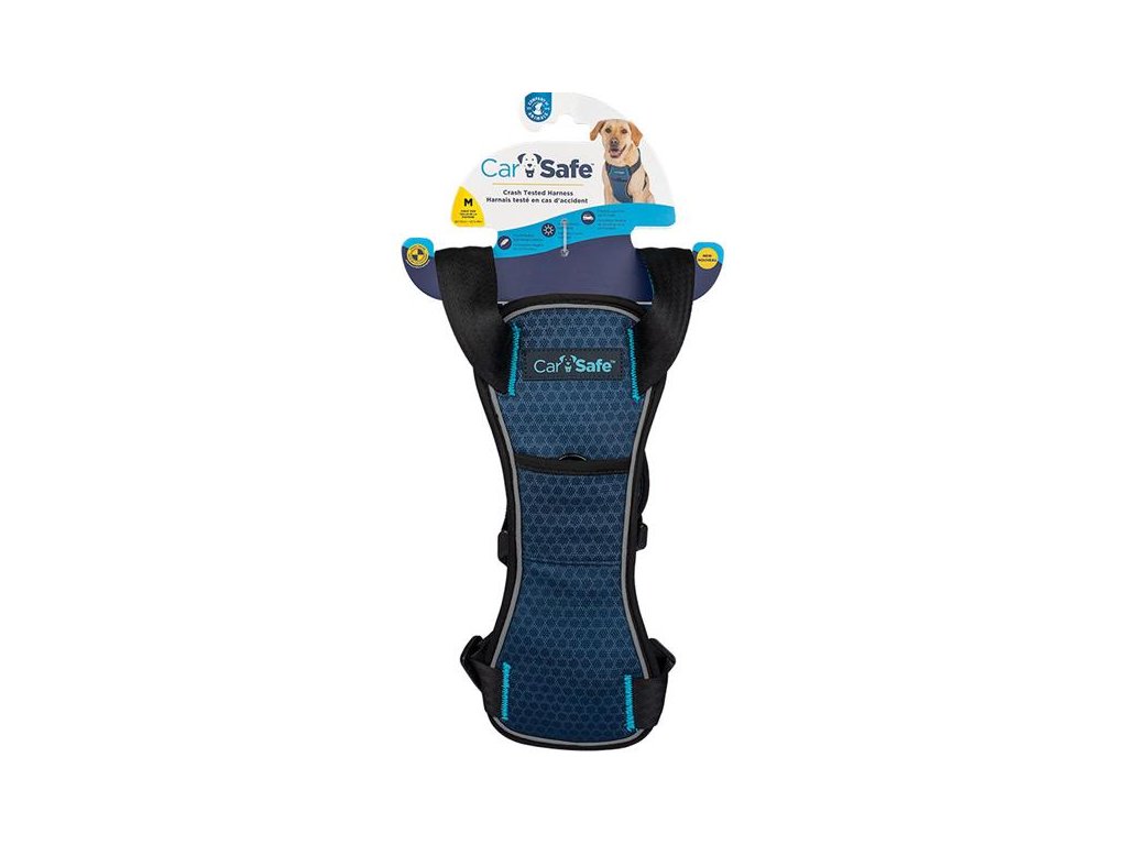 CarSafe Crash Tested Harness od společnosti Company of Animals je ultrapevný a lehký postroj pro psy prověřený při nárazových testech bezpečnosti motorových vozidel a certifikovaný do hmotnosti psa 32 kg. Má dvojí funkci – lze jej použít spolu s bezpečnostním pásem jako přepravní zádržný systém v autě i jako postroj k venčení psa. Je nejen bezpečný, ale také velmi pohodlný. Je vyrobený z kvalitního, pevného, a přesto lehkého materiálu s polstrovaným hrudním i hřbetním dílem opatřeným prodyšnou síťovinou. Speciální reflexní tkanina pak zajišťuje dobrou viditelnost psa v případě potřeby. Postroj je v horní části vybaven madlem, kterým lze protáhnout autopás a připoutat tak vašeho psa k zadnímu sedadlu. D-kroužky v hřbetní a hrudní části zase slouží pro připnutí vodítka v případě, kdy pes potřebuje opustit vozidlo. Díky přezkám na bocích postroj snadno a rychle nasadíte i svléknete, aniž by zvíře muselo zvedat tlapky, a pomocí plastových průvleků nastavíte potřebnou délku popruhu.