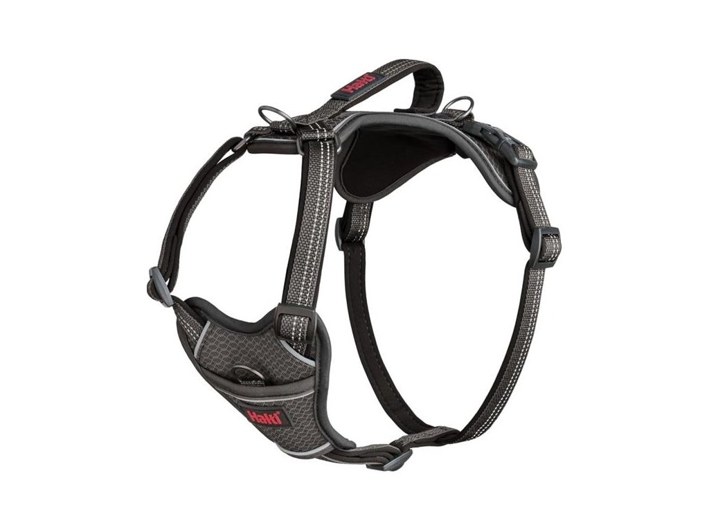 Halti Anatomy Harness je pohodlný a bezpečný postroj pro dospělé psy konstruovaný s respektem k jejich anatomii. Při jeho vývoji byly zohledněny výsledky vědeckých studií vlivu omezujících prostředků na psí zdraví. Jde o vysoce komfortní postroj vhodný jak pro běžné venčení, tak pro náročnější aktivity. Psovi zajišťuje naprostou volnost pohybu při chůzi i v běhu, žádným způsobem neomezuje pohyb ramen a rovnoměrně rozkládá tlak. Hrudní a zádový díl jsou vyklenuté, aby lépe kopírovaly psí tělo, a polstrované neoprenem pro větší pohodlí. Vodítko lze k postroji připnout na 3 místech: kroužek za krkem je ideální pro chůzi nebo pro připnutí psí známky, kroužek na zádech pro turistiku či běh a kroužek na hrudi pro regulaci tahání a skákání. Hřbetní rukojeť slouží k asistenci psovi nebo k jeho přidržení. Díky vysoce odrazivému prošití popruhů a lemování hrudního i zádového dílu je postroj reflexní ze všech stran a zvyšuje tak bezpečnost psa za zhoršené viditelnosti.