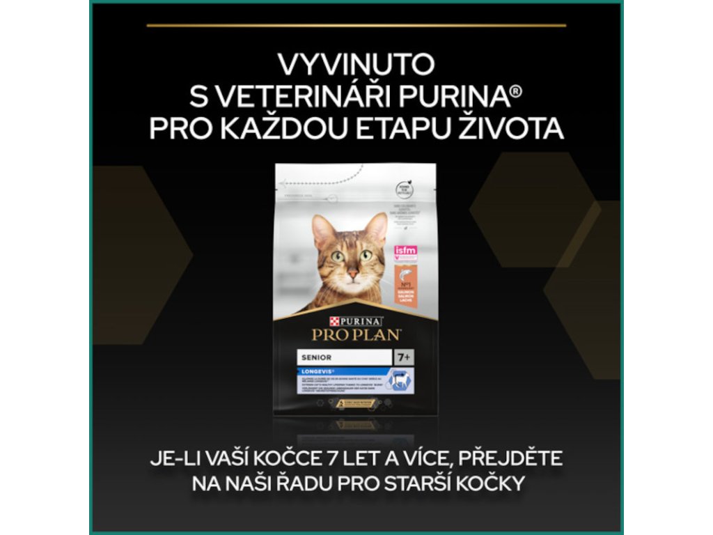 Krmiva Purina PRO PLAN obsahují specifické kombinace živin vyvinuté na vědeckém základě, které pozitivním způsobem přispívají k dlouhému a zdravému životu koček. Tato receptura je určená pro dospělé kočky a obsahuje všechny esenciální živiny včetně vitaminů A, C, a E, omega-3 a 6 mastné kyseliny a prebiotikum přírodního původu.