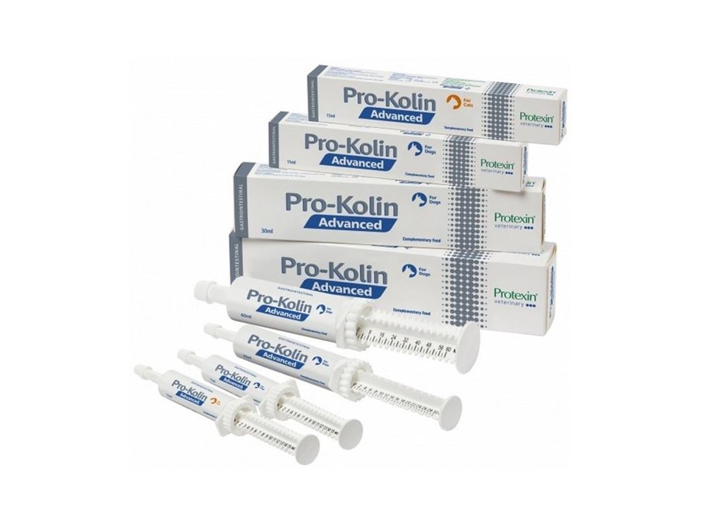 Pro-Kolin Advanced je vylepšený Pro-Kolin+, který je na trhu již od roku 1998. Navíc obsahuje psyllium, beta-glukany a vedle kaolinu další druh jílu (montmorilonit ze skupiny smectitů). Použití PKA poskytuje zvířeti několik výhod pro zvládnutí trávicích poruch.