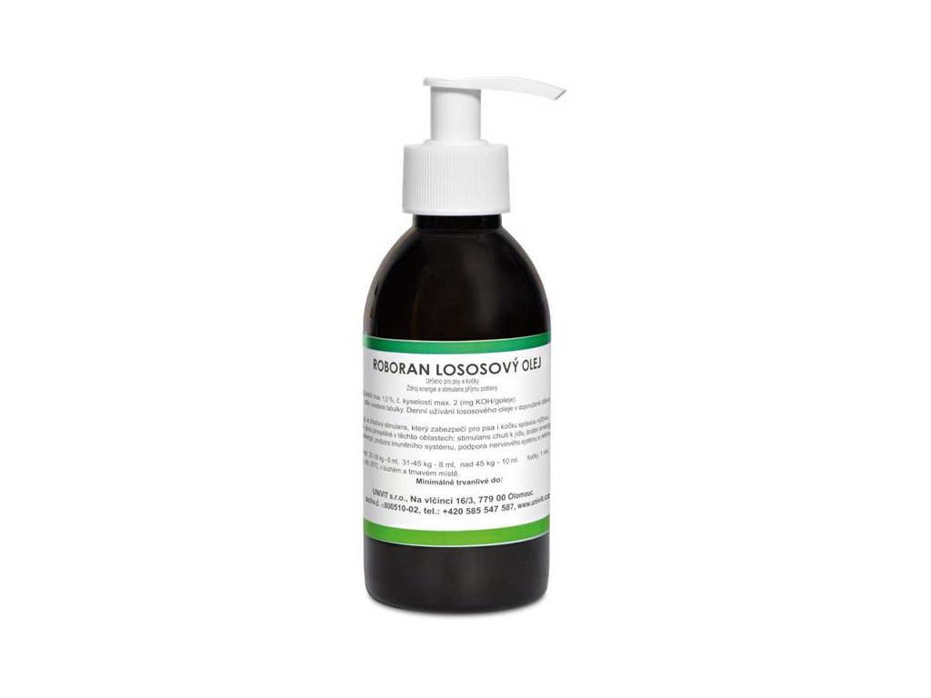 Lososový olej Roboran je přírodní produkt s přirozeně vysokým obsahem důležitých omega-3 nenasycených mastných kyselin. Tyto základní živiny, nezbytné pro udržení zdraví, si organismus psů a koček nedokáže vytvořit sám, a musí je proto přijímat zvnějšku.